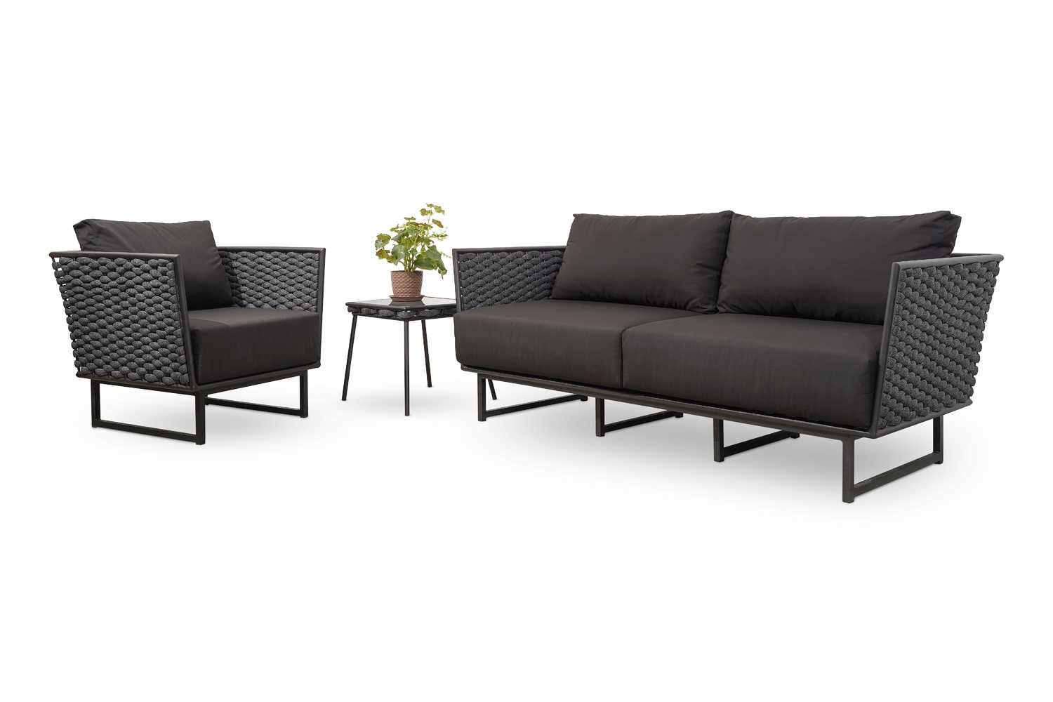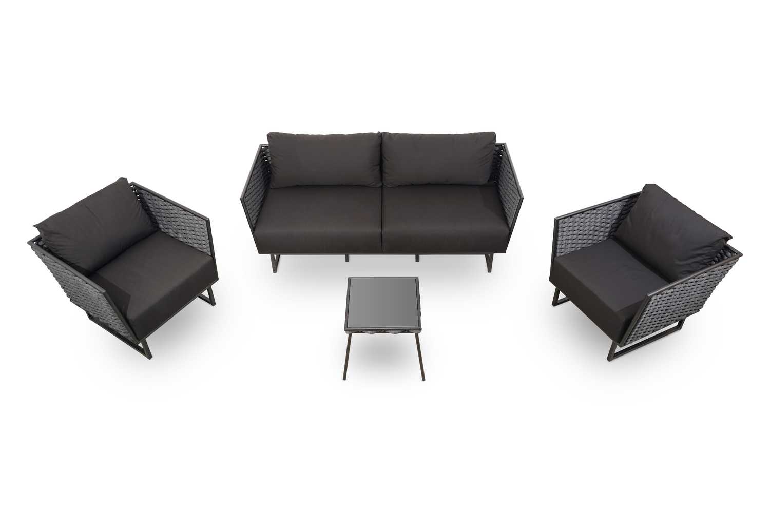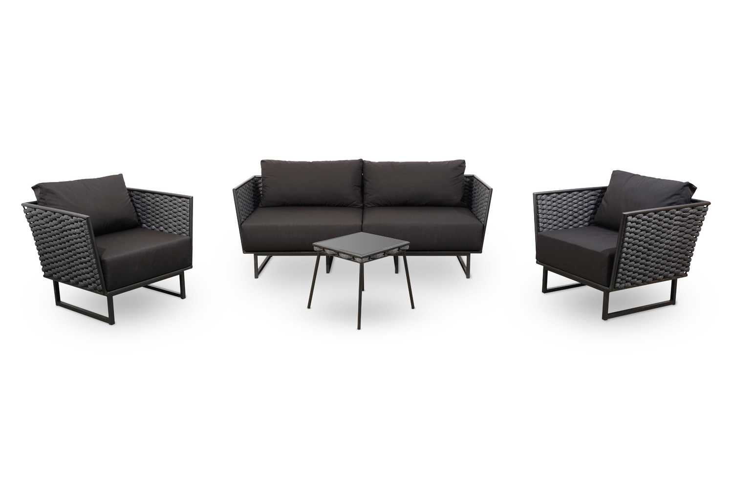 Перейти к описаниюКомплект мебели для отдыха "Флоренция" - это один из любимых наших комплектов, так как он ультра-стильный, комфортный и безусловно подкупает его цвета - глубокий серый и черный, не только красивые, но еще и практичные, совсем не маркие и требует минимального ухода. К тому же при изготовлении мы изпользовали уличную ткань (outdoor) с пропиткой, в которых используются составы, придающие водоотталкивающие и антигрибковые свойства. Строгие минималистичные формы каркаса безупречно сочетаются с уютными мягкими подушками, наполнитель которых пенополиуретан + OPENFORM в 15 см толщиной.OPENFORM - материал состоит из крошечных пружинок. Уникальный наполнитель не поддается сжатию - всегда стремиться в прежнюю форму. Воздухопроницаем, не выделяет токсических веществ , экологически чистый и гипоалергенный материал. Обеспечивает в матрасе правильную упругость и увеличивает ортопедический эффект. Все элементы комплекта, включая журнальный столик изготовлены из алюминия, который покрыт полимерной краской, имеющей ряд преимуществ: в первую очередь технология является абсолютно экологически чистой, покрытие не содержит вредных соединений, не имеет запаха и сниженную опасность возгорания.Особенностью комплекта "Флоренция" является оформление стенок дивана и кресел плетение в виде рогожки. Считаем, что этот комплект идеален не только для отдыха.