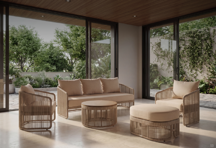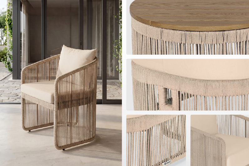 Представляем комплект для отдыха "ФЛЕКТО" – шедевр из современного, высокопрочного синтетического шнура (роупа). Этот комплект не боится ни дождя, ни снега – он создан для жизни на свежем воздухе круглый год. Прочный алюминиевый каркас, выполненный методом цельной сварки и защищенный специальной порошковой краской, гарантирует непревзойденную долговечность и устойчивость к коррозии. "ФЛЕКТО" превращает пространство, где форма обретает глубокое содержание и дарит незабываемые моменты.