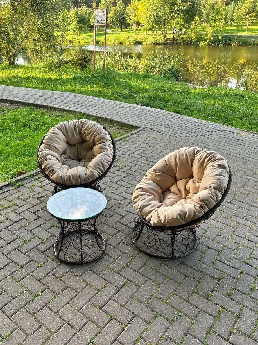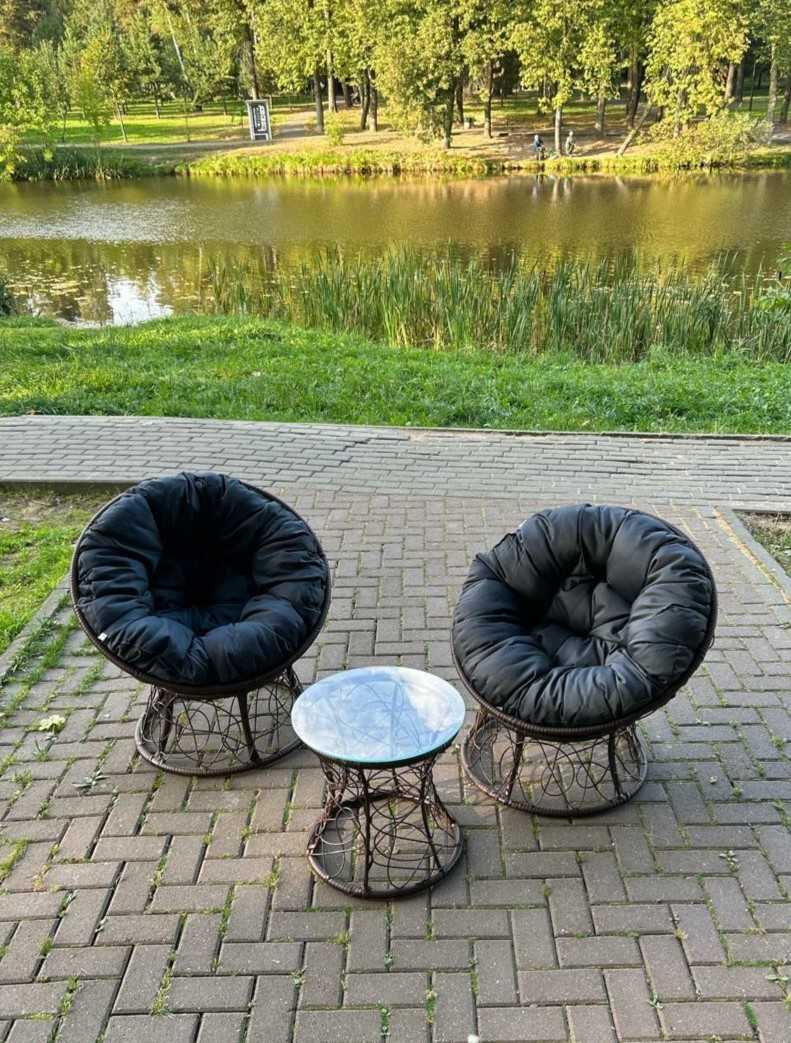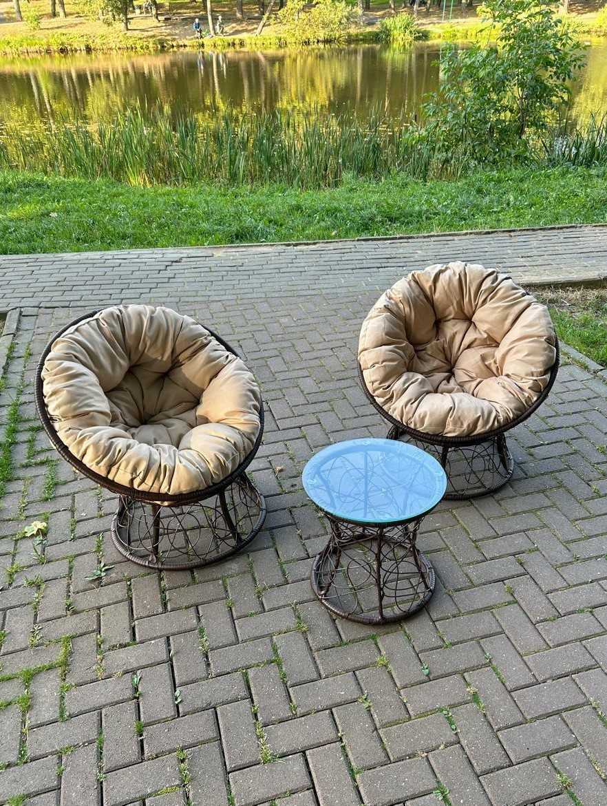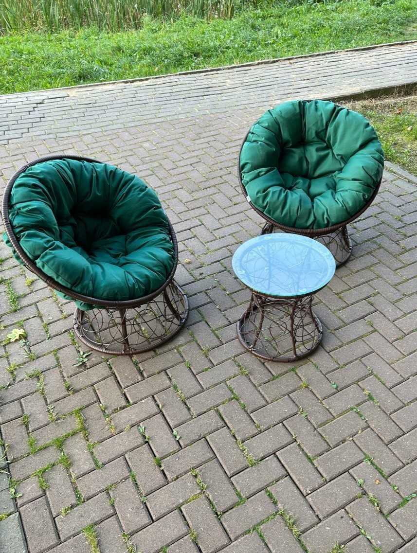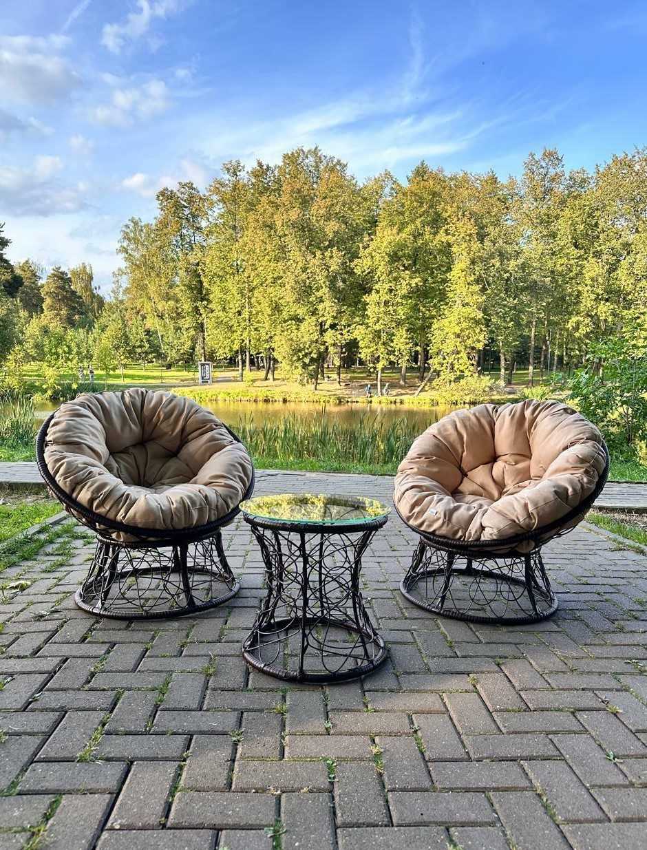 Хотите посмотреть? Приезжайте в наш выставочный зал Москва, г. Видное, ул Тинькова 39 (3 км от МКАД)!В садовый комплект входит: два кресла, две подушки и журнальный столик.Кресло "Папасан" с мягкой подушкой, располагает к комфортному отдыху, ведь так приятно разместиться в мягком кресле и отдохнуть...