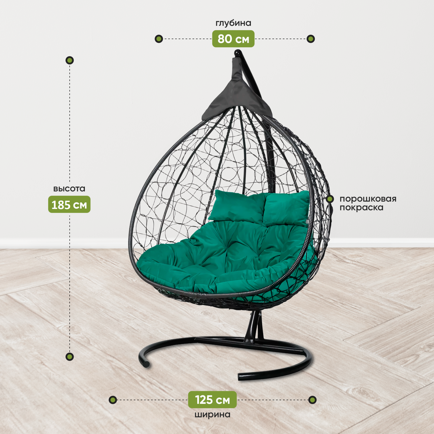 Подвесное двухместное кресло-кокон FISHT черный + каркас |