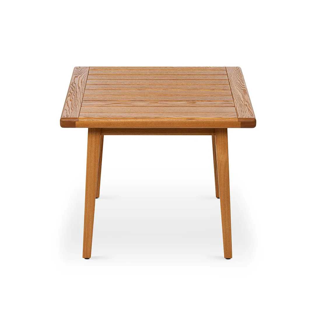 Коллекция "ЛЕТТО". Компактный стол из массива ясеня — универсальное решение для обеденной зоны на открытом воздухе. Натуральное дерево с масляным покрытием подчёркивает фактуру и сохраняет устойчивость к влаге.