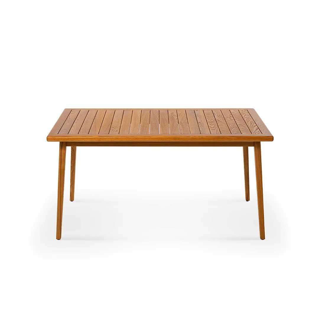 Коллекция "ЛЕТТО". Компактный стол из массива ясеня — универсальное решение для обеденной зоны на открытом воздухе. Натуральное дерево с масляным покрытием подчёркивает фактуру и сохраняет устойчивость к влаге.